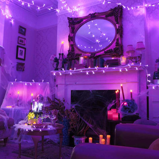Connectable 100 LED Purple Halloween Lights Indoor, 8 Modes Plug in Purple Christmas String Lights Clear Wire, 33Ft Christmas Tree Light Outdoor for Halloween Tree, Garden, Bedroom